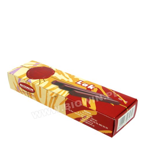 Lak do korków 0,3 kg/6 lasek, wykazuje właściwości mięknięcia w podwyższonych temperaturach. Po zastygnięciu trwale zachowuje kształt. Ma dobrą przyczepność do papieru, tekstyliów oraz innych powierzchni. Stosowany od stuleci do uszczelniania korków butelek i wykonywania odcisków pieczęci na ważnych dokumentach. Bardzo prostą metodą stopienia laku jest jego skruszenie do puszki aluminiowej i rozgrzanie nad palnikiem lub świeczką.