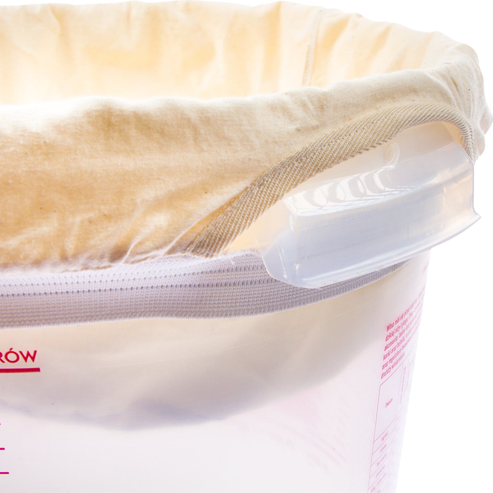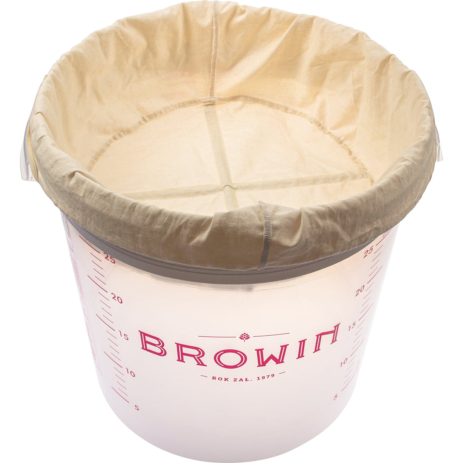 Umiejscowienie worka wewnątrz pojemnika pozwala na swobodne zamknięcie go pokrywą podczas filtracji, co zabezpiecza nastaw przed parowaniem alkoholu oraz chroni go przed owadami i zakażeniami. Dzięki gęstej strukturze materiału miąższ i drobinki zmętnień zatrzymują się na worku, co daje 100% gwarancji, że uzyskany płyn będzie odpowiednio klarowny.